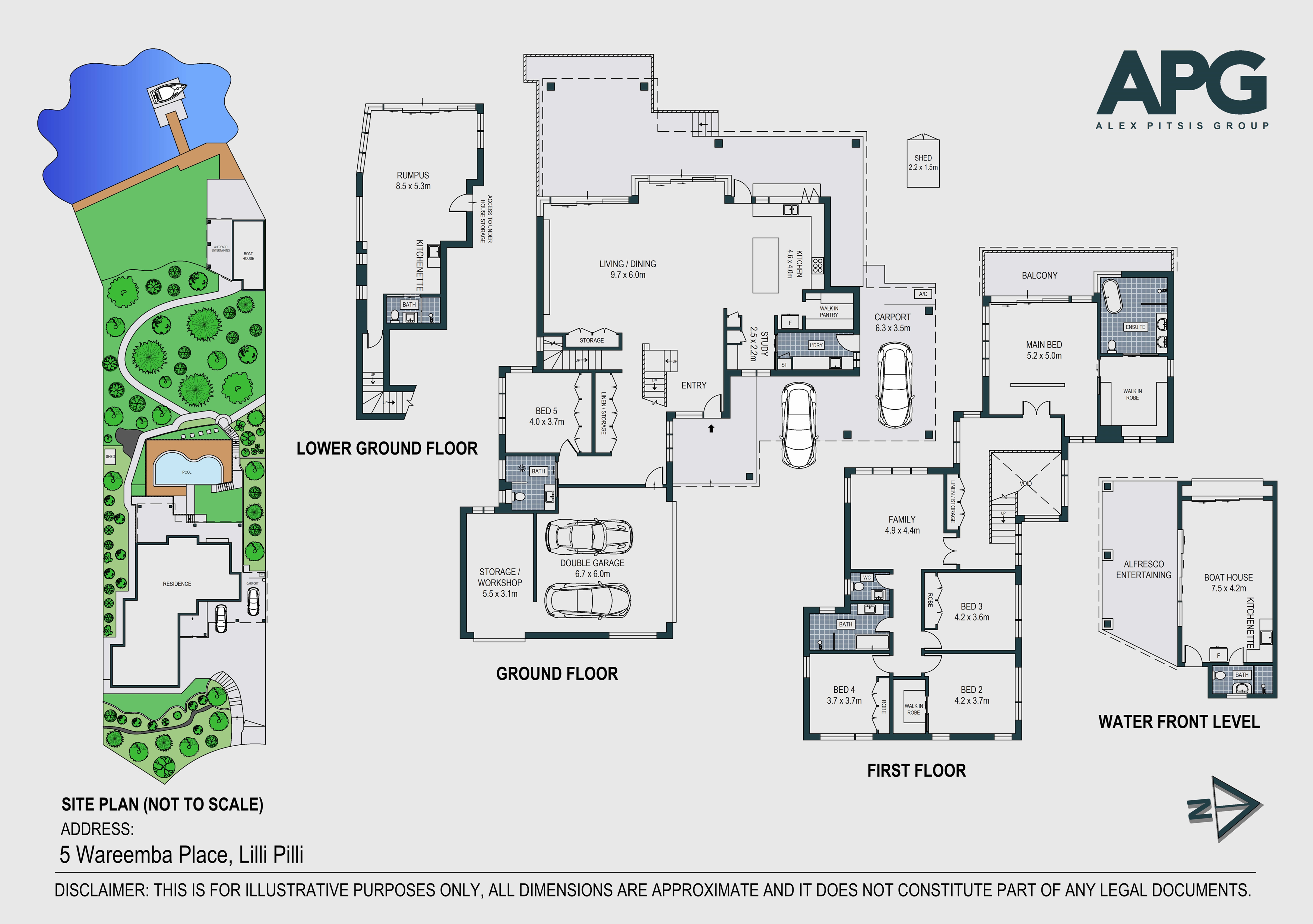 • Dedicated waterfront entertaining level with fire pit, alfresco area and boathouse