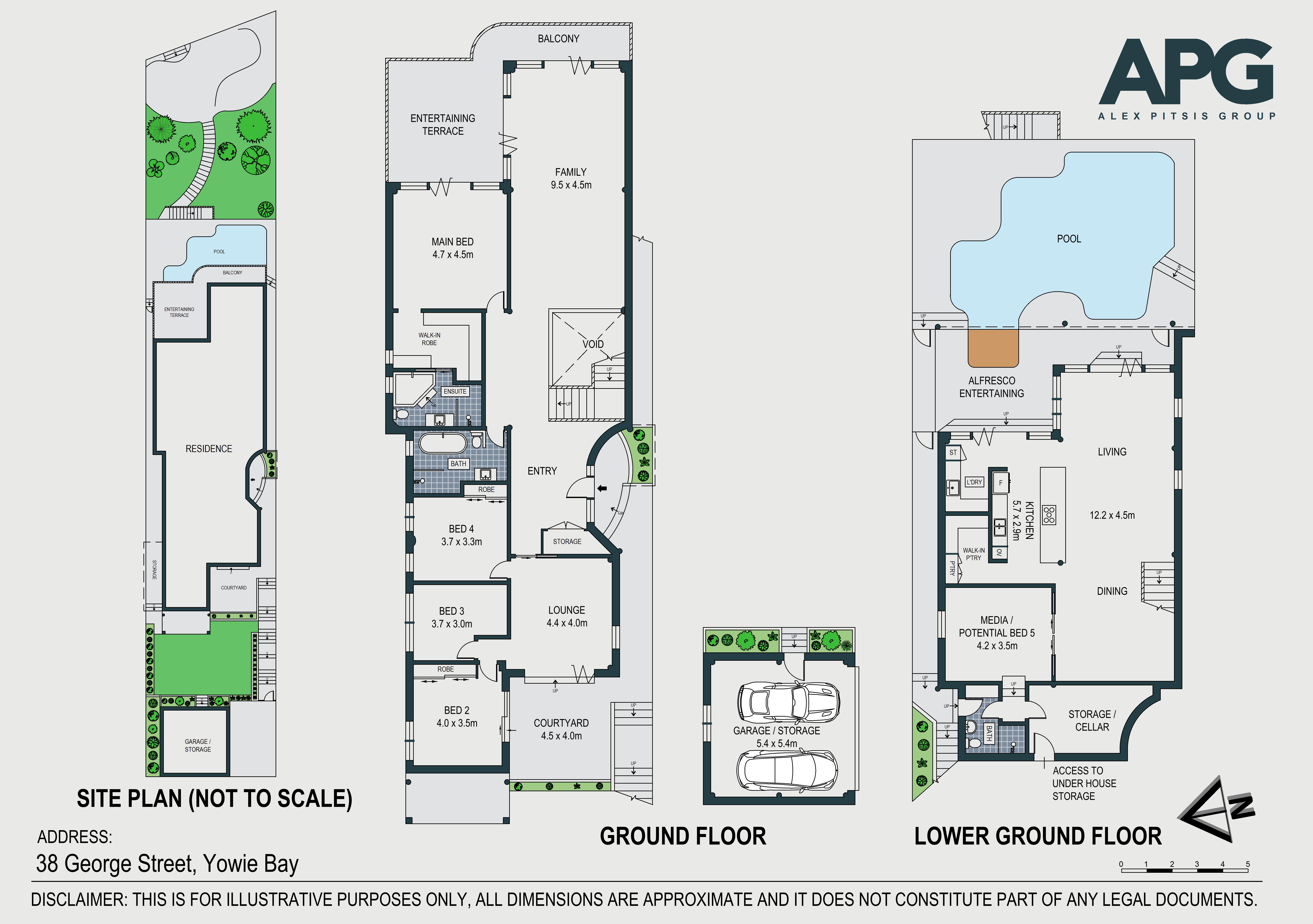 • Multiple living zones including lounge, family, dining, and media room